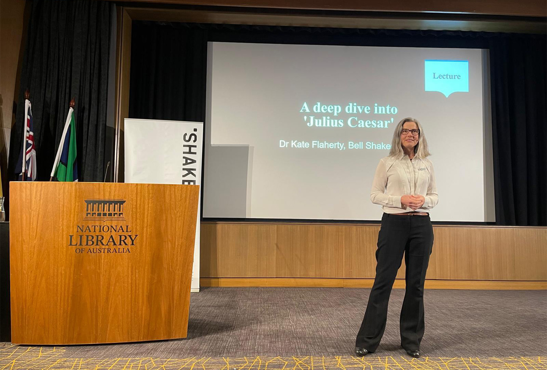 In anticipation of the Bell Shakespeare performance tour, A Deep Dive into Julius Caesar was hosted in Sydney, led by Professor Huw Griffiths, Melbourne, led by Professor David McInnis (Professor of Shakespeare and Early Modern Drama) and Canberra led by Dr Kate Flaherty (Head of the English program at the Australian National University).